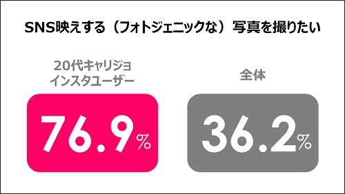 20代キャリジョインスタユーザーの、なんと約8割がフォトジェニック(SNS映えする)な写真を撮りたいと回答。