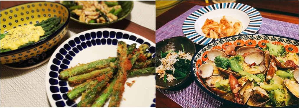 食材の彩りや、そもそもの「おいしそう!」感はもちろんのこと、器やランチョンマット、フォークやナイフなどまでこだわりぬいた写真も。食材はせっかくなので季節を味わい尽くすために旬の食材を使ったり。