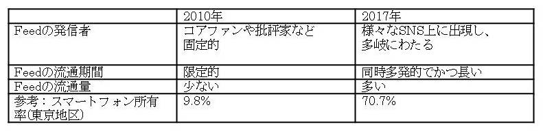 (図1)2010年→2017年 “Feed”にみるコンテンツと生活者の付き合い方の変化