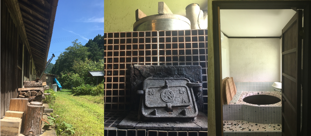 なかに入ると、高い天井、黒々としっかりした張りがこの地の暮らしを支えてきた年月を物語ってくれる。カマドがあって、お風呂は五右衛門風呂で回廊があって中庭があって思いの外、日差しが優しく降り注ぐ。