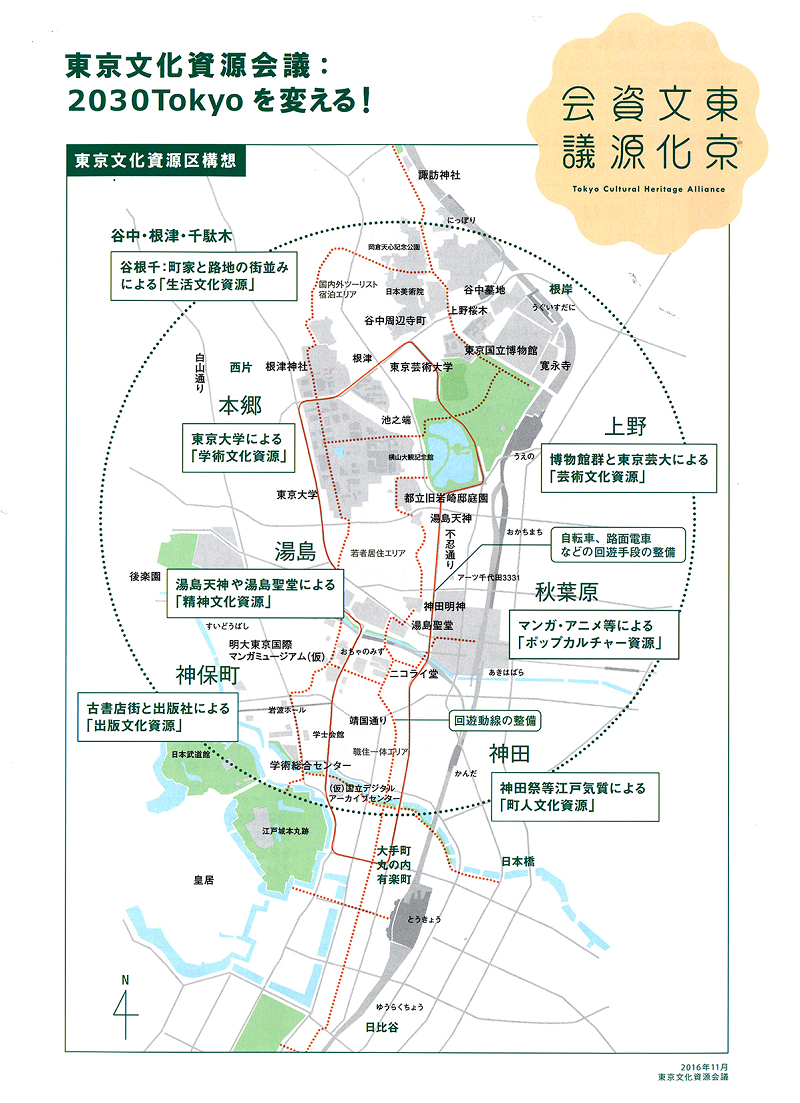 近年、このエリアを「東京文化資源区」と呼び、こうした東京の豊かな「文化資源」の視点から、都市の魅力や価値を検証し、2020年以降に向けた新しい都市生活像と都市政策を構想しようという多様な取り組みが、「東京文化資源会議」という民産官学連携によるプロジェクトのもとで生まれています。