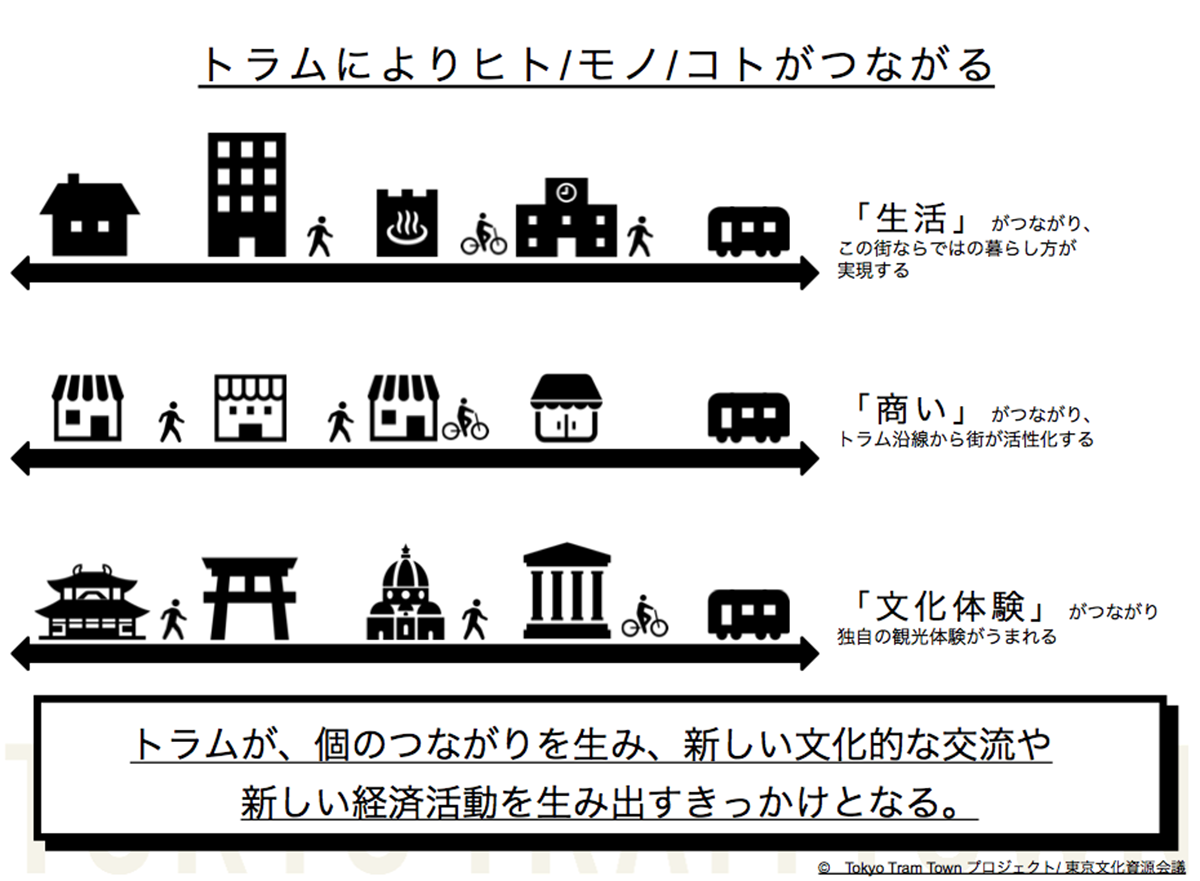 もうひとつは、「インナー東京の実体化」という構想です。トラムの軌道が、いわばインナーリングとなって、ヒト・コト・モノがつながり、今までとは異なる生活文化の単位と、エリア完結型の新しい生活スタイル、まさに生活文化圏が浮かび上がってくる可能性がある。トラムがきっかけとなって、これまでの東京のライフスタイルとは異なる新しい生活時間を持った独自の生活圏をつくりだすかもしれない。