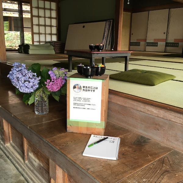 「面白いですよ、地元の人って。ゲストハウスをオープンした当初、どうもわたしのいない時にも覗きにきているらしい、なんとなく来た形跡がある。みんなに覚えて欲しくて、こんな自己紹介プレートつくって、飴を置いてみたんです。そしたら確実に飴が減っている、これは面白い。それで調子に乗って笑、パッケージにわたしの名前入りのビスケットを置いてみた。