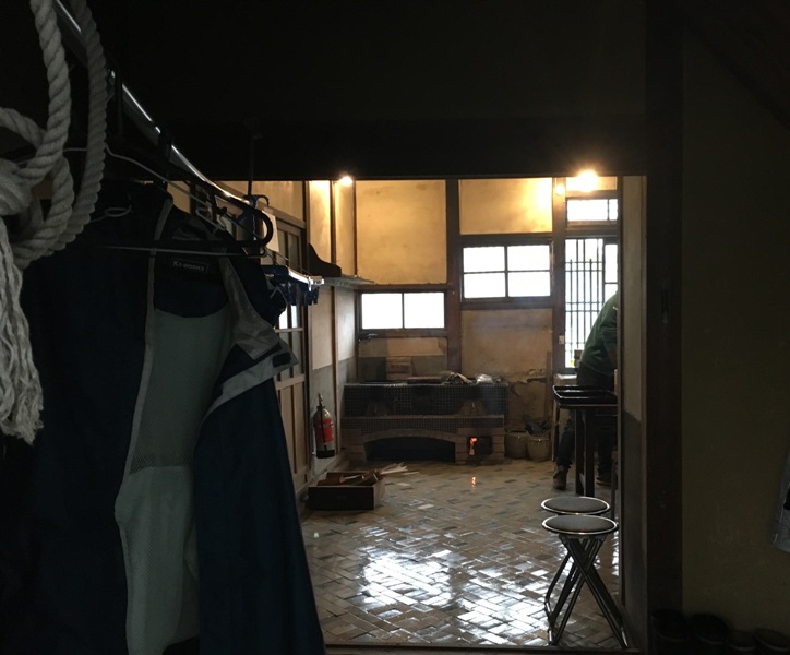 まだくらい朝の長い廊下、ゲストハウスの奥まった角に向かうと、バチバチッと小気味好い音を立てている厨房/台所へ。
