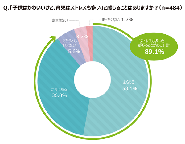 ■「子供はかわいいけど、育児はストレスも多いと感じますか?」に、「よくある」と答えたママは53.1%。