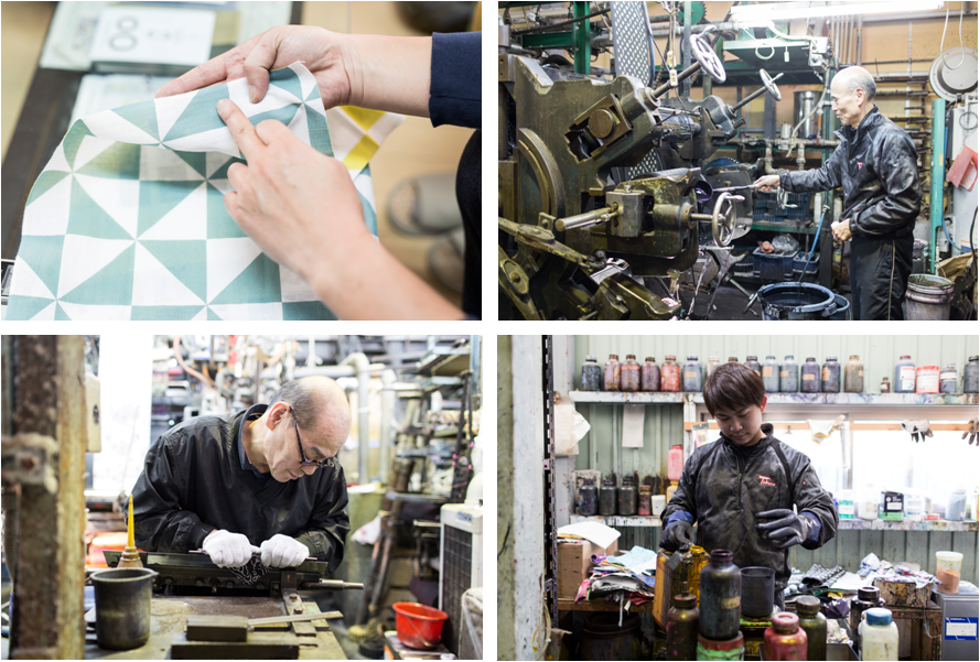 寺田:はい。竹野染工は創業63年、私で3代目になります。昔から、ロール捺染(なっせん)という染色技法専門でやってきました。元々は、布おむつや寝間着など、日本人が日常的に使っていた布を染める仕事をしてきましたが、布おむつは紙おむつに代わり、寝間着も洋風のパジャマになり、生活が変化することで染めるものも変わってきました。今の仕事は、ほぼ手ぬぐいの染色ですね。