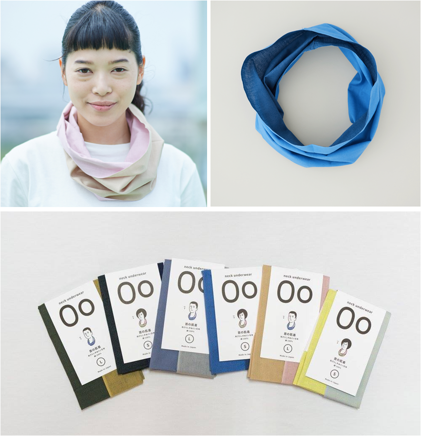 神崎:「手ぬぐい」から離れて和晒を現代風にアレンジすることを目指したブランドで、「Oo(ワオ)」と言います。「hirali」が手ぬぐいの魅力を広げるブランドだとすれば、「Oo(ワオ)」は「和晒」の魅力を広げるブランドという位置づけです。手ぬぐいを輪っかにしただけなんですが、手ぬぐいではなく、「ネックアンダーウェア(首の肌着)」として新たに提案しています。