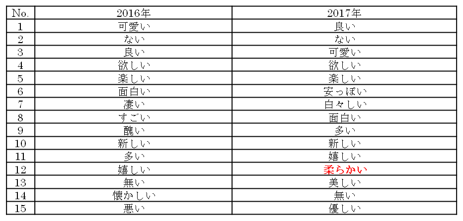 すると、ポジティブなワードとして上位にランクインしているのは、共通して「可愛い」「楽しい」「面白い」といった内容でした。しかし、今回注目したいのは、2017年の12位にランクインしている「柔らかい」というワードです。ちなみに、2016年では、161位でした。