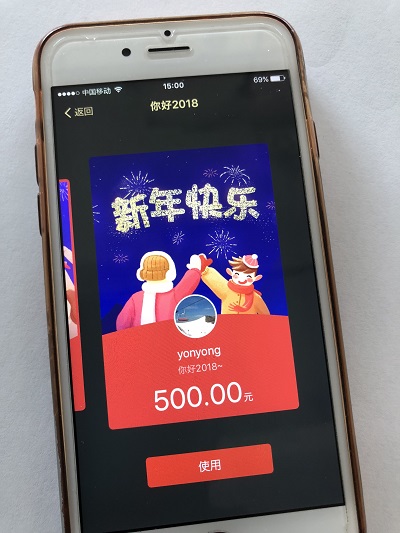一方、「AI春聯」だけではなく、Alipay(中国のアリババグループが提供するモバイル決済)やWechatPay(中国のテンセント社が運営するSNSのWechatのモバイル決済)などの電子決済アプリの普及によって、この1~2年「圧歳銭(お年玉)」の渡し方にも変化が起きています。昔のように、「紅包」(赤い封筒)に現金を入れる必要性がなくなり、また、スマホの「電子紅包」から好きなデザインを自由に選んで、そのまま送金できるようになりました。数年後には、紙の「紅包」さえ見たことのない子供達も出てくるのではないだろうかと一瞬考えました。