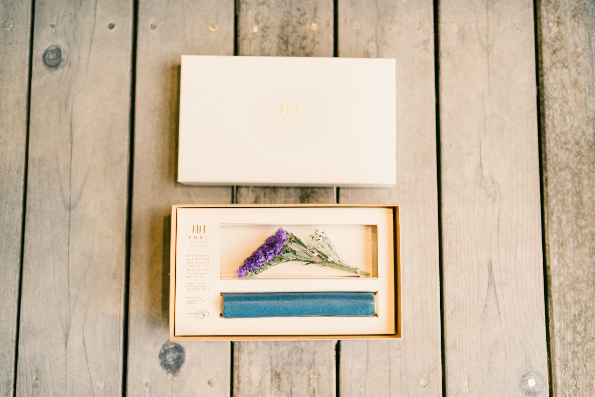 弟・洋二:そのまま「壁につく」という意味と、器を焼く際に欠かせない道具に「ツク」というものがあり、ちょうどいいと思い付けました。当初はこれを「壁につける花器」として販売していましたが、器の入り口としてHOTOKIの名前に縛られずに羽ばたいて欲しいと思ったんです。また、人にあげたくなるようなギフトセットにして、ドライフラワーも押しピンもセットで入っていれば使いやすいかなと。名前やパッケージ、パッケージに載せる言葉にもこだわりました。