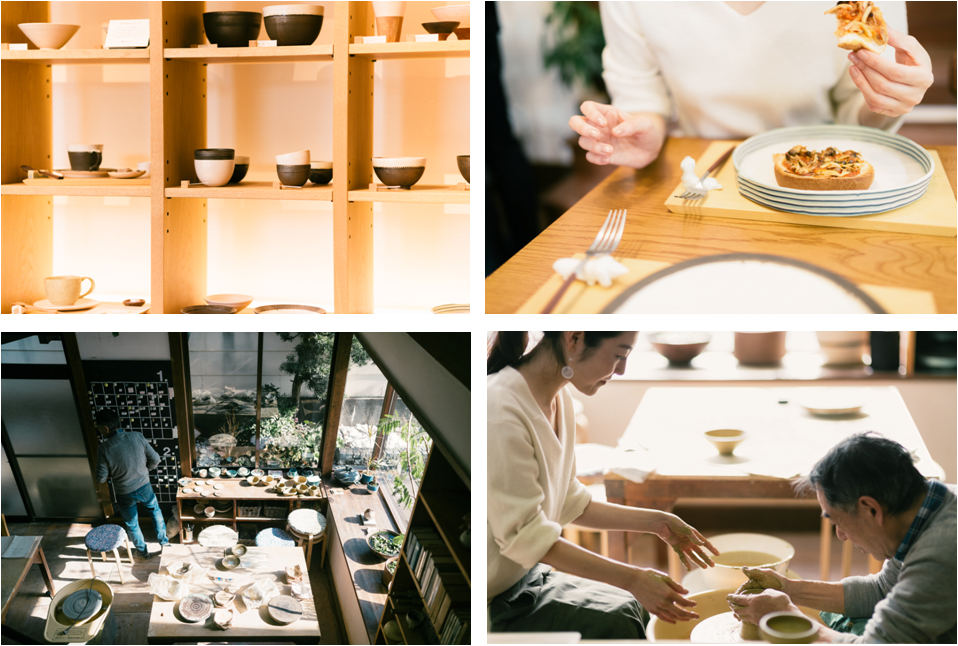 兄・大介:それでとうとう思いを形にする段階になったのですが、最初は買う前に器に料理を盛って体験できる、安直にカフェが併設されているというイメージしかありませんでした。知人の建築家に相談すると、「カフェを楽しみながら工房を見ることが出来る」という今の構造を提案してくれました。目からうろこが落ちましたね。「うつわをもっと楽しむ場」というコンセプトを体現する「HOTOKI」が誕生したんです。