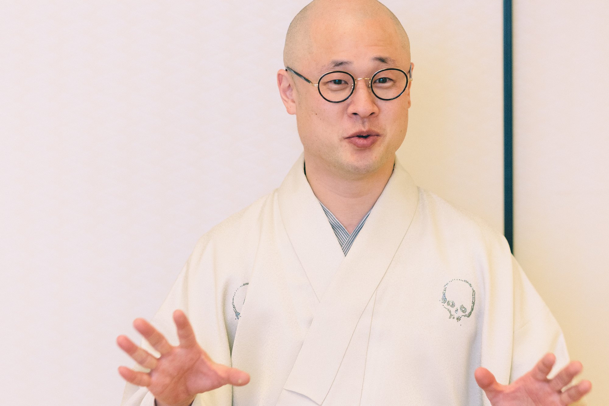 にこやかな笑顔と、ドクロマークの着物。ただものじゃないと思いつつも、松村さんに促されるままに、部屋の奥へと進みます。
