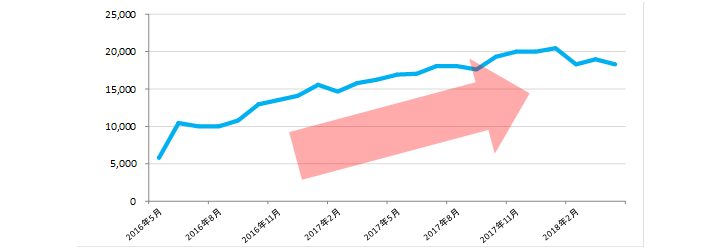 まず「売るかも購買」が活性化している背景ですが、何よりも個人間の売買が容易になったオークションサイトやフリマアプリの出現が大きいと思います。特に、「フリマアプリ」の検索はここ数年で大きく増加しています。