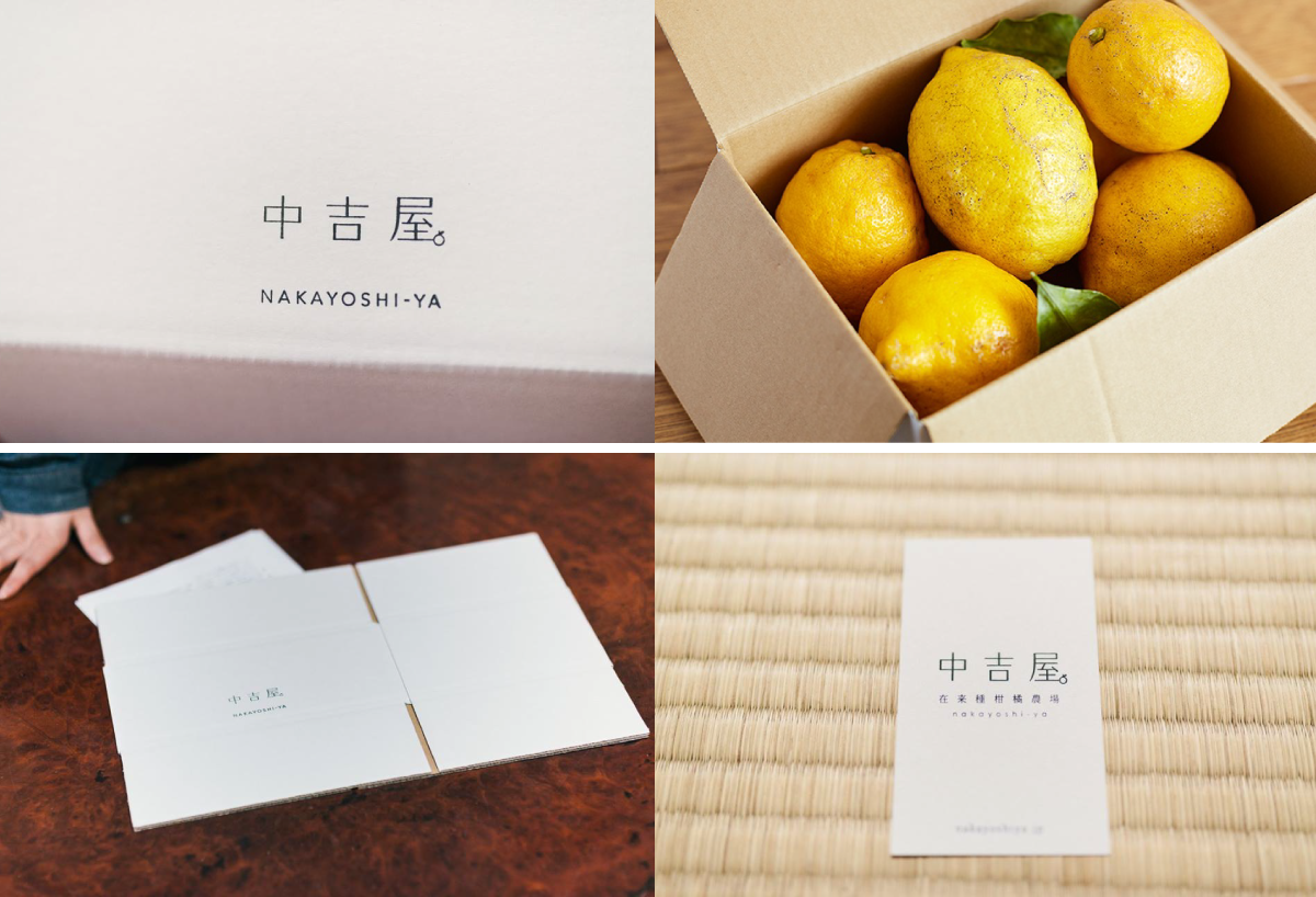 北村:まず、今までは商材はその時とれた全ての柑橘を優先順位つけずに持っていっていましたが、レモンに絞りました。在来種・無肥料・無農薬による違いが最も明確に現れているのがレモンだったからです。一口食べてもらえさえすれば「これは別物だ」と十分伝わるものだったんです。そこからは、一つのレモンを中吉屋のロゴを入れ、特注した箱に詰めて持っていくように変えました。会社の名刺も、レモンの皮を素材に作りました。