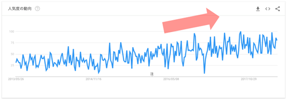 Googleトレンドで「睡眠の質」というキーワードで検索傾向を分析してみても、じわじわと検索数が上昇しており、睡眠の質に対して、生活者の意識が高まっていることが伺えます。
