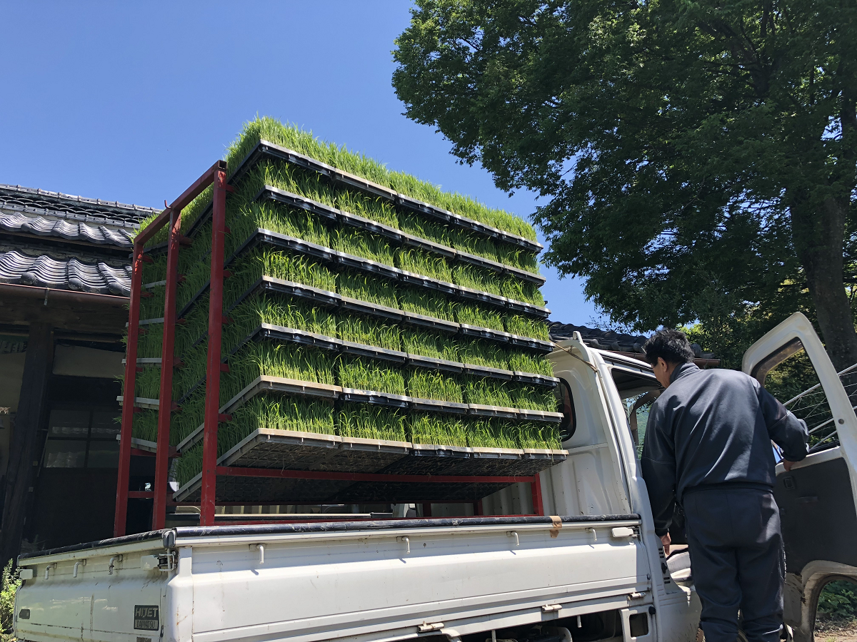 わたしがすぐに取り掛かれるように、苗から田んぼから長靴から麦わら帽子まで、いろんな準備をしてくれた師匠、いきなり「深谷さん、田植え機乗るっぺ」と促した。