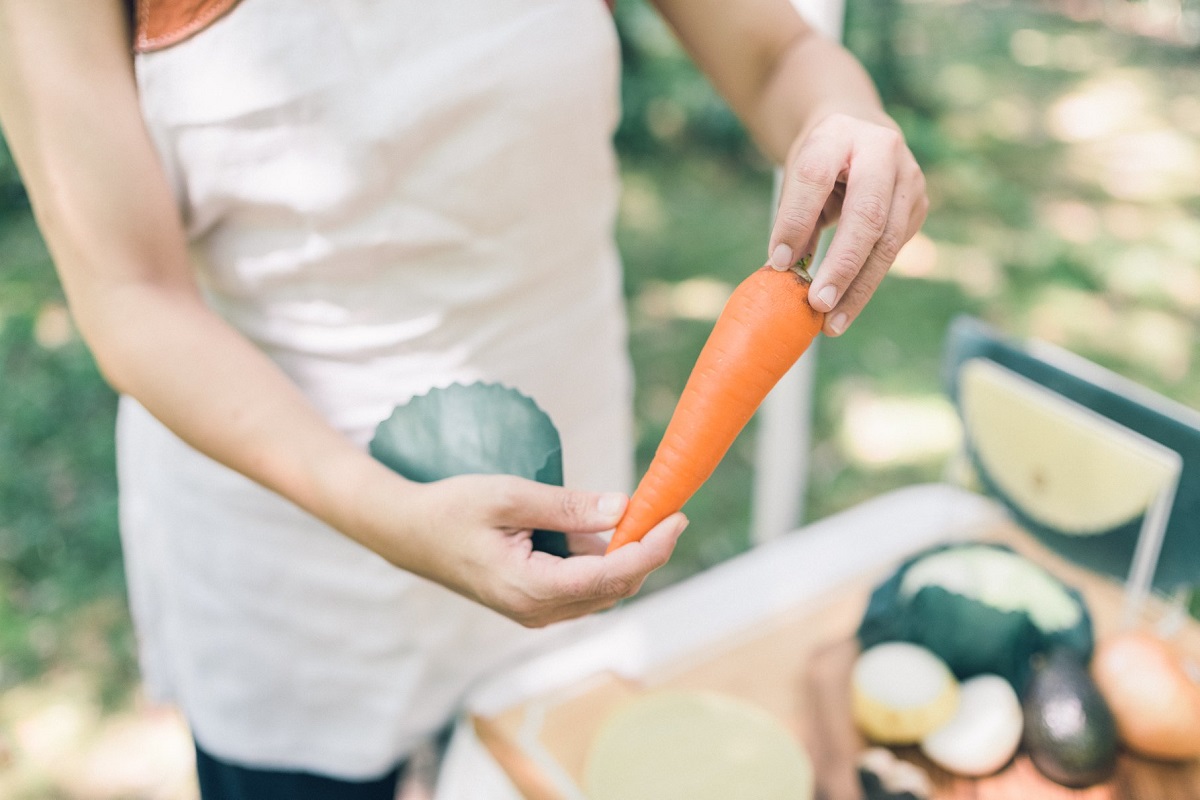 浦川:「aco wrap」は、天然素材で作った、何度も洗って使えるラップです。手で温めることで粘りが生まれ、お皿やボウル・食材等にぴたりと貼り付く仕組みです。実は完全密封ではなく素材が「呼吸」しているのが特徴です。原材料のミツロウとホホバオイルには保湿効果と抗菌作用があるので、それによって野菜などの持ちがすごくよくなるんですよ。これ、少し時間がたった人参なのですが、「aco wrap」を巻いていたのでみずみずしいでしょう?
