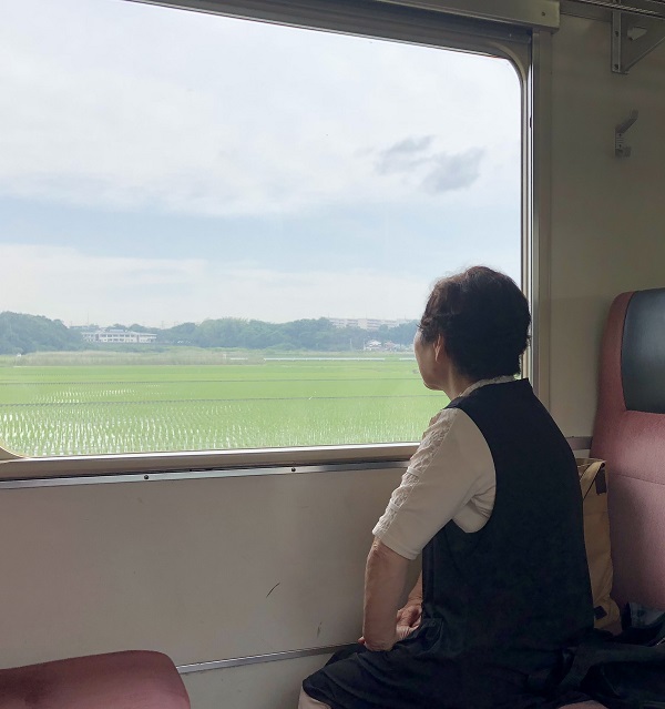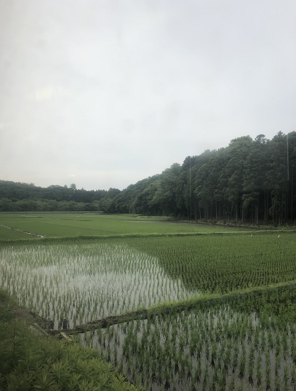 ゆっくりと列車は出発、ともなく周りは田んぼ、田んぼ、田んぼ