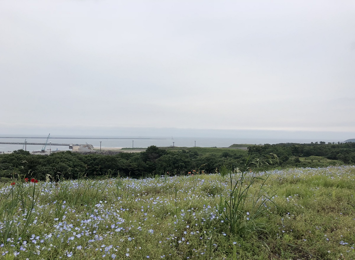 パッと景色が広がった瞬間、そこにネモフィラの終わった丘が・・・