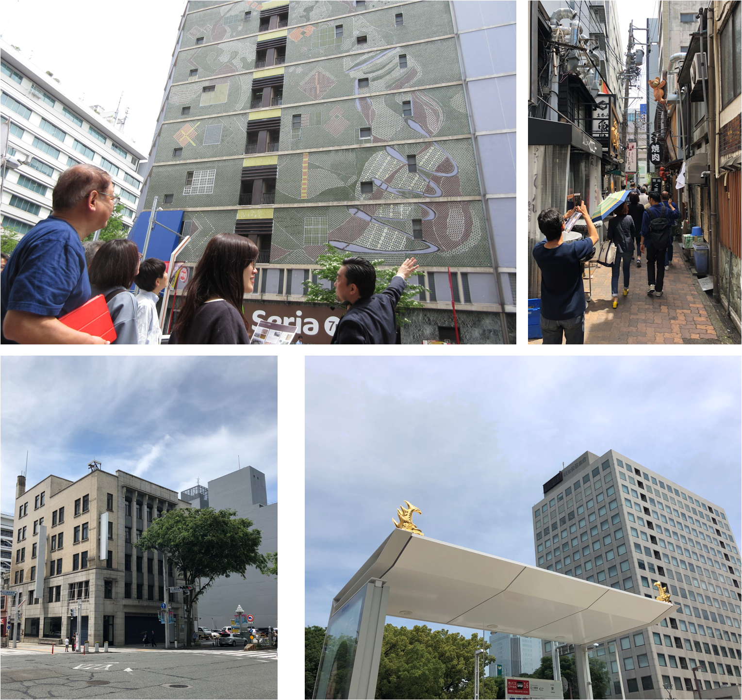 日本最古の屋上観覧車がある百貨店、壁一面タイル壁画の老舗ビル、ビルに挟まれた横丁から神社仏閣まで、バス停のシャチホコも織り交ぜながら、3次元でまちを散策し尽くす楽しい時間