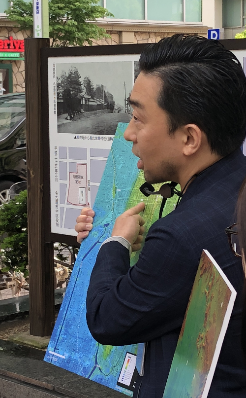 なぜ道がわかりにくいのか?とってもわかりやすい説明を伺いながら、まちの楽しいポイントを軽快に愉しく案内してくださる
