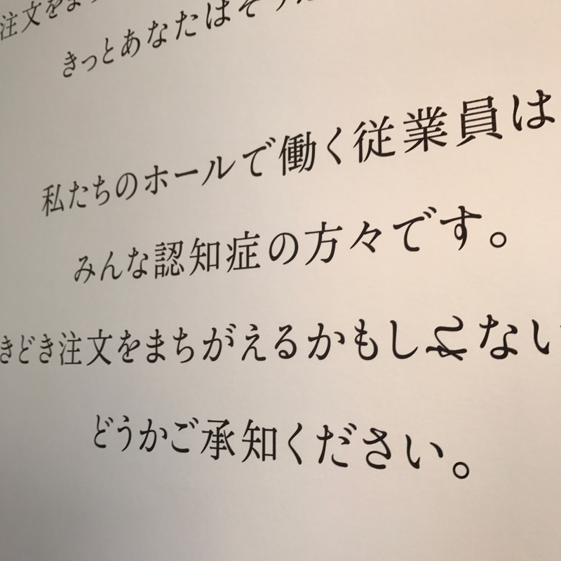 僕たちが主催したケースではないのですが、僕たちも全面的にサポートさせていただいた東京町田市の「注文をまちがえるカフェ」という企画の時には、当初反対した当事者の方もいらっしゃいました。最初の会議の時に「注文をまちがえるの、“る”が反転しているけど、これは俺たちのことを馬鹿にしているじゃないか」と怒って帰ってしまった。でも、そこから、町田市の方が皆で「なぜこのプロジェクトをやるのか」ということを1ヶ月ぐらいかけて一生懸命話し合われて、みんなが納得してついに当日となったのですが、やっぱり、現場にいらっしゃっても、まだ表情が硬くて。でも、接客し始めてからどんどん表情が柔らかくなっていくんですよね。それを見たご家族が、「こんな夫の笑顔は久しぶりに見ました」って涙されていました。