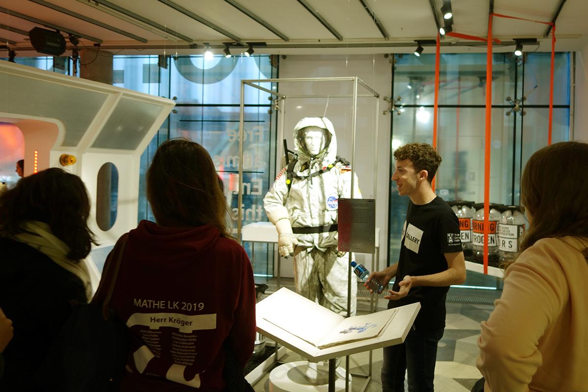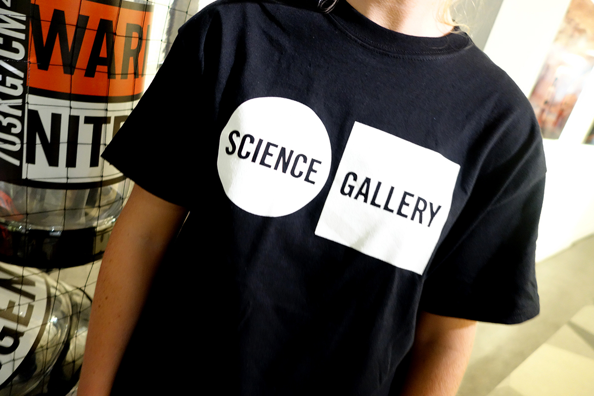 このギャラリーで働いている黒いロゴTシャツを着たスタッフたち、彼らも学生たちなんですよ。彼らは「メディエーター」と呼ばれていて、この場所を訪れた人たちに対して、展示されているプロジェクトがどのような問いかけを持っているかを、来場者との会話を通してともに考えることを促す存在です。単なる説明員ではありません。このサイエンスギャラリーで最も重要なのは彼らの存在です。科学的探求と来場者とをつなぐヒューマンインターフェイスであり、彼らがこの場所の鍵を握っています。