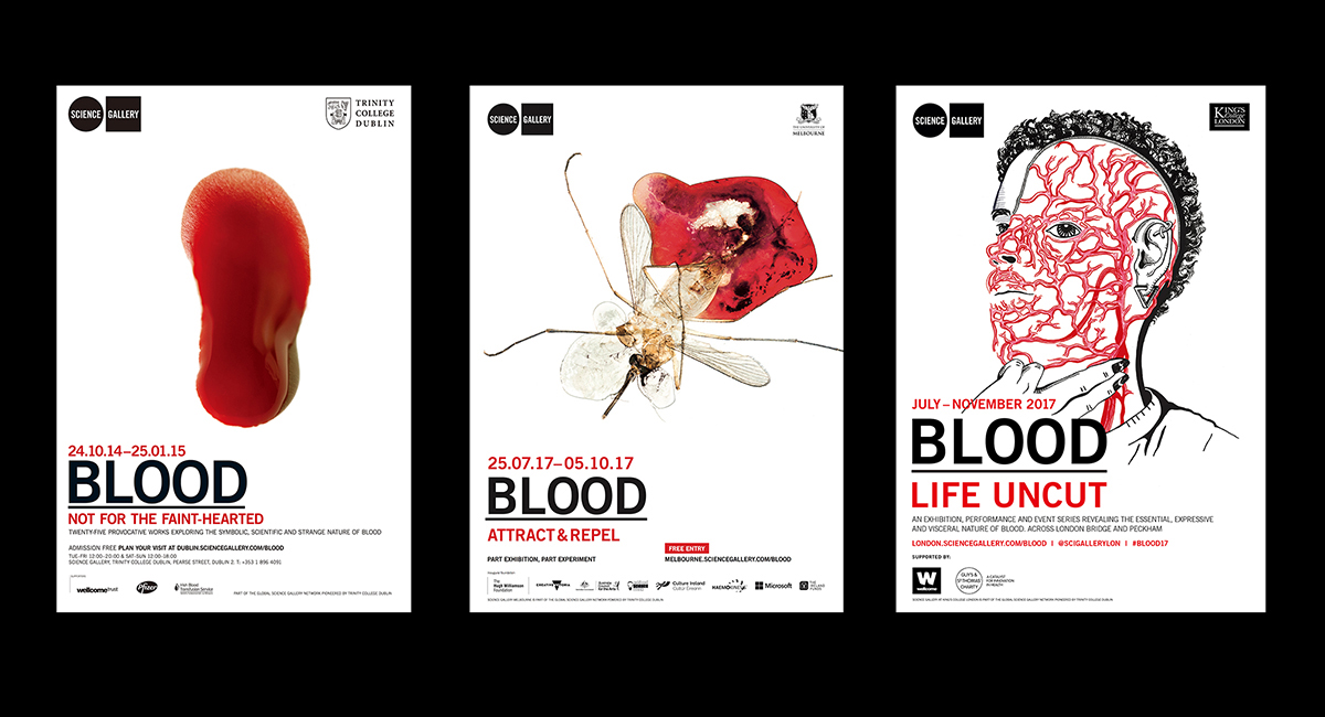 例えば、こんな事例があります。 2015年にダブリンで実施した「BLOOD」展。これは、「血(BLOOD)」を、生と死、健康と病気など、私たちの生命、文化、社会のポジティブな面とネガティブな面と表す象徴として捉えるというテーマの企画展でしたが、その後、2017年にはメルボルンとロンドンでも同じタイトルの展示が開催されました。しかし中身は、常に各地で再構成され、全く同じではありません。同一テーマを共有しながらも、それぞれの場所ごとにオープンコールが行われ、その都市や地域社会の社会課題に適したプロジェクトが選ばれ、展示内容が再編集されていくのです。例えば、メルボルンでは、伝統的なアボロジニーの文化を反映したプロジェクトが、新たにオープンコールによって加えられました。共通して展示されるプロジェクトもありますが、それらはグローバルな視点で考えるべき問いを投げかけているものです。
