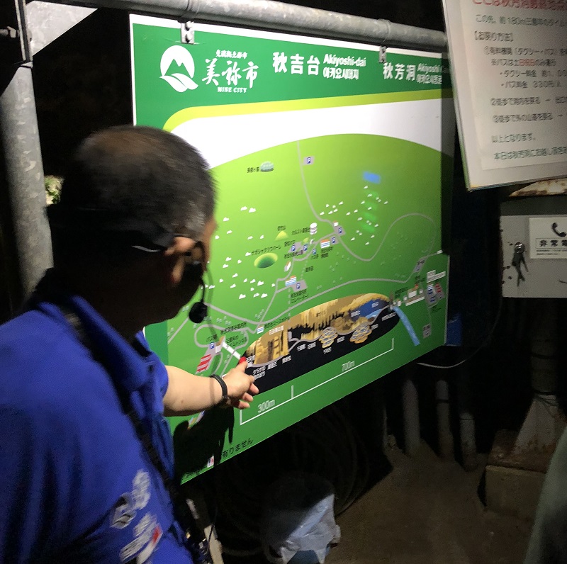 ほんとうに薄暗い洞内を、ウイットを混ぜながら軽快に、時に実直なガイドしてくださる。こういう方がいるからこそ、見学が思い出深い体験になるのだな〜と改めて感激。