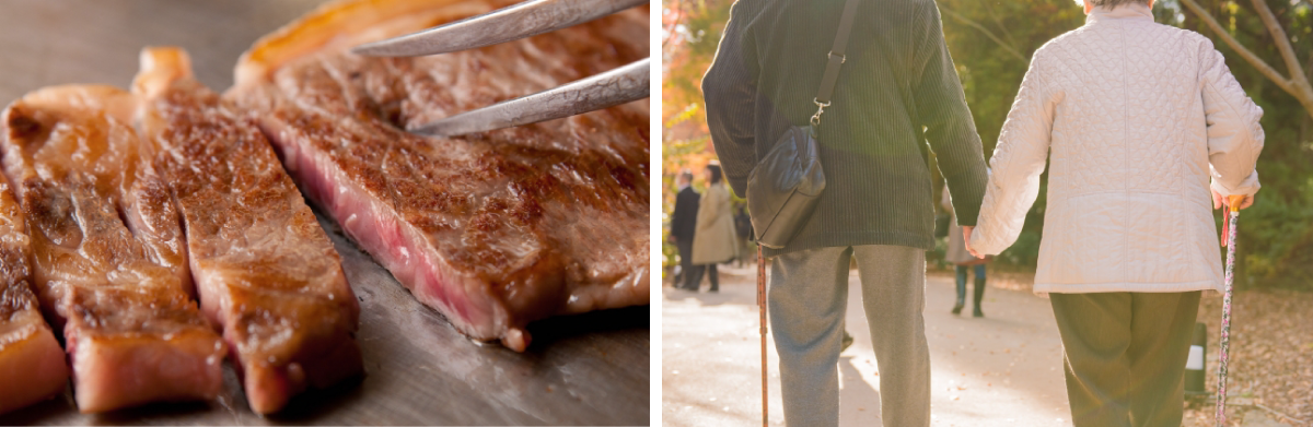 とあるステーキ屋では、高齢者客が増えていることから、行列時には優先的に入店できるシニアカードを用意したり、入れ歯メーカーとコラボしたキャンペーンを実施しています。Twitterで、このステーキ屋に行っているシニアの投稿を見てみると、息子と一緒に450グラムの肉を頼んでいたり、炭酸飲料と肉を楽しんでいたり、健康というよりも、本当に肉が食べたくて来店しているようです。