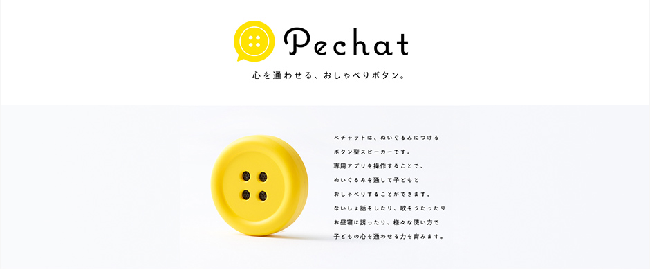 そして、この考え方を生かして開発した商品の一つが、「Pechat(ペチャット)」いう、ぬいぐるみに付けるボタン型のスピーカーです。専用アプリを操作することで、ぬいぐるみを通して子どもとおしゃべりすることができます。おかげ様で発売してから1年が経ちますが、引き続き、大変大きな反響をいただいています。