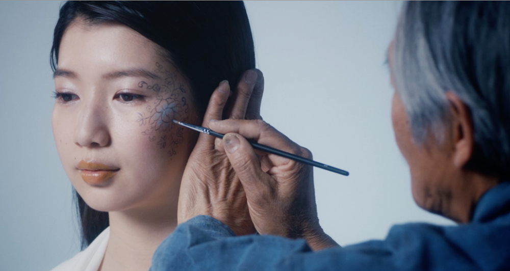 では具体的にどうやって、彼女たちと肥前地域の焼き物を結びつけるか。肥前の焼き物と言えば繊細な絵柄が象徴的ですが、その絵付けを担う「絵付師」の皆さんに協力していただけないだろうか?と考えました。400年の歴史を持つ絵付師の技術で美しいメイクを施してもらう、ヤキモノメイクのアイデアはそうやって誕生しました。実際、絵付師さんの仕事の現場に赴くと、絵筆の持ち手は意外と太く、それでも何とも細かく美しい絵柄を描き上げる技術に感動します。ただ、それを通常のPR施策のようにきれいに動画にまとめたところで、若い方々はなかなか自分ごと化できないでしょう。だったら自分たちの顔にメイクをしてもらうことで、SNS上で発信し、「いいね」をもらう……そういう装置にしてしまえば、面白がってもらえるのではないかと考えました。