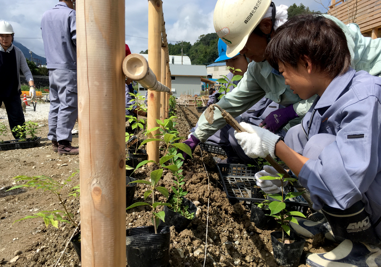 この集合住宅プロジェクトのランドスケープ・デザインを手がけて下さっている田瀬理夫さんのアイデアなんです。「今そこに高校があって、高校生たちがいて、造園を学んでいる。じゃ、その子たちと一緒にやろうよ。」って。