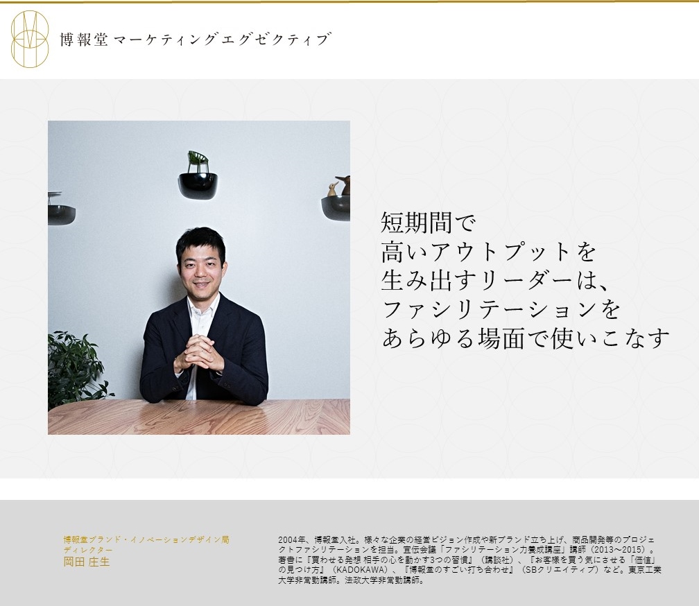 岡田 事業会社のリーダーをゲスト講師に招いて、リーダーシップについて議論を交わします。昨年はマツダの主査という車作りのプロジェクトリーダーを務めている方や、JTの最年少執行役員になった方を招き、ファシリテーションをどのように生かしているかについて話を聞きました。マツダの方は、実は以前博報堂のファシリテーション研修を受けて、自分自身のリーダーシップのあり方が大きく変わった経験を持っています。受講者と同じ目線で話すので、みなさんとても刺激を受けています。