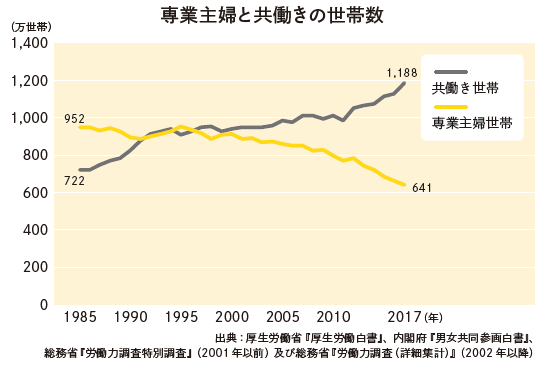夏山 すぐに大きく変わったというわけではなくて、じわじわと変化していったという感じです。興味深いのは、女性の働き方の変化と日本経済の動きがシンクロしていることです。バブル経済のピークは1986年から1989年くらいで、崩壊したのが1991年から1992年くらいというのが一般的な見方ですよね。そして1993年からは、のちに「失われた20年」と言われる時代に入っていったわけです。私が総合職に移ったのがまさにその年でした。データをみると、共働き世帯数が専業主婦世帯数に初めて追いついたのがやはり同じ頃です。