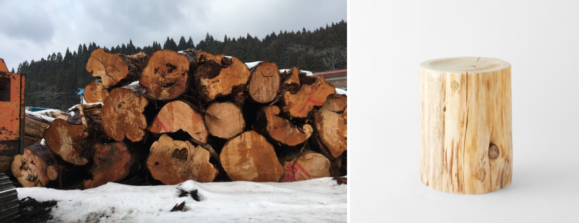 そうですよね。実家にごろごろしている丸太を、都会でも大自然を感じ、青森ヒバの香りを楽しめるスツールにしました。座面は座りやすい様、ゆるやかなカーブをつけています。丸太のかたちはすべて違って、割れなどもありますが、この自然のかたちを楽しんで欲しいなと思っています。そういう良さが分かってくれる人が、お客さんになってくれているのだと思います。