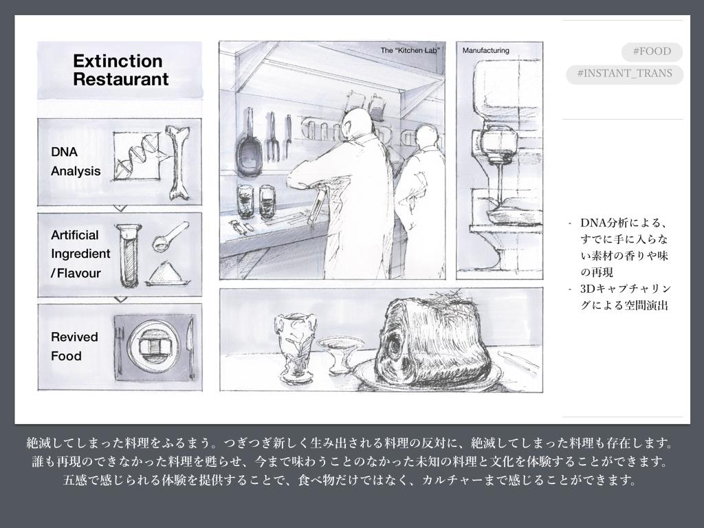 私たちは事前に世界各地の先進事例のリサーチを行い、「未来の贅沢」を考える上で必要な3つのアイデア設計の方向性(=デザインストラテジー)を定義しました。それが「INSTANT TRANS(瞬間的な異世界への移動)」「NARRATIVE TECH(テクノロジーによるストーリー性の拡張)」、「ENHANCE POTENTIAL(「潜在不可能性」の排除)」です。