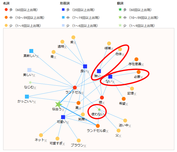 〈「ランドセル」と一緒に投稿されている内容とそのつながり〉