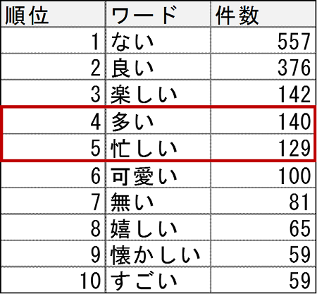 「中学生&部活動」と同時に投稿されているワード(形容詞)ランキング