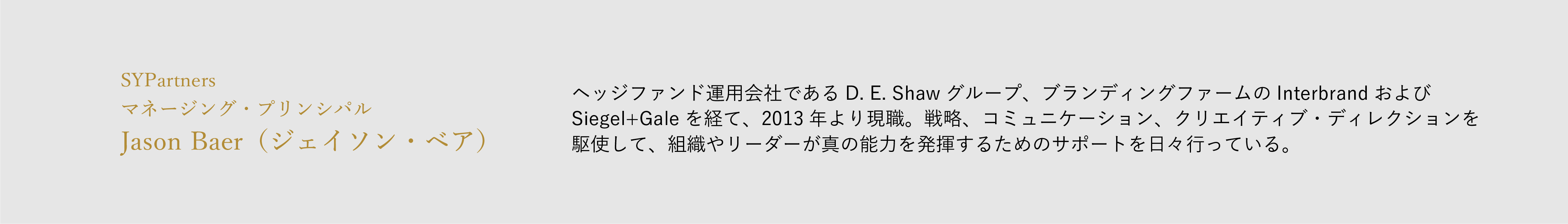 SYPはストーリーテリングをルーツとして立ち上げられた会社です。創設者のキース・ヤマシタは、ストラテジストであり、クリエイターでもありますが、何よりもまずストーリーテラーです。彼はパワフルでビビッドなナラティブ(物語)を作り上げるという独自の能力に基づき、この会社を設立しましたが、この精神は25年を経た今でも、私たちの仕事の中核を成しています。キースと同様、私も駆け出しの頃はライターをしていましたが、キャリアを積むにつれて、ストーリーテリングが受け手だけでなく、むしろ語り手にとって有用であることに気が付きました。一貫したストーリーを作り上げるという作業によって、自分のアイデアをより鋭く、クリアにできるからです。