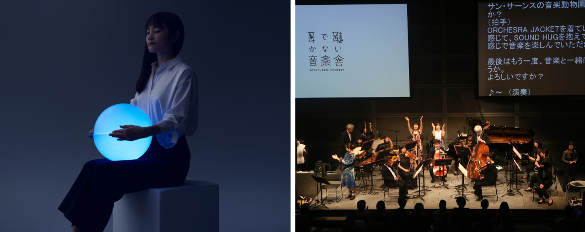 ―― 宇佐美さんは落合陽一さん(ピクシーダストテクノロジーズ株式会社 代表取締役CEO / メディアアーティスト / 筑波大学准教授)と共同で、「SOUND HUG(サウンドハグ)※1」という音楽を身体で感じるデバイスを開発し、日本フィルハーモニー交響楽団(以下日本フィル)と組んでコンサートを開催しています。まずは「SOUND HUG」について教えてください。