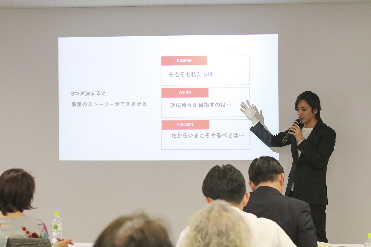 ミッションは、「なぜ企業やブランドが立ち上がったのか」という「過去」を示す言葉であり、ビジョンは、生み出したい「未来」を示す言葉です。その2つの間にあるコンセプトは「今」やるべきことは何かを示す言葉です。この3つが決まると事業やブランドのストーリーが出来上がります。
