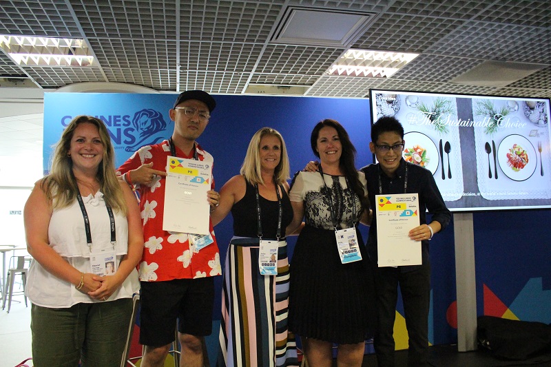 ちなみに、今回のPR部門の審査員の方々は全員欧米系の女性。異性・他人種であることを、ポジティブに捉えると、アジアの男の子達が楽しそうにプレゼンしていたら、好意的に受け止めてくれるかもしれない。そう信じて、楽しく陽気な演出を試みました。