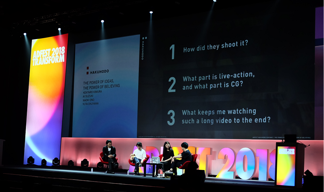 今年で21回目を迎えるADFEST 2018「アジア太平洋広告祭」が3月21~24日、パタヤ(タイ)にて開催され、3月23日には、博報堂グループ4名のスピーカーによる博報堂主催セミナーが実施されました。モデレーターを博報堂のAPAC Co-CCOの木村健太郎がを務め、前半では多数の広告賞を受賞した「Gravity Cat」の制作秘話についてSIXの奥山雄太が語りました。後半では「monom」チームリーダーの小野直紀、クリエイティブプロデューサー鈴木あいが「Pechat」誕生秘話について明かしました。