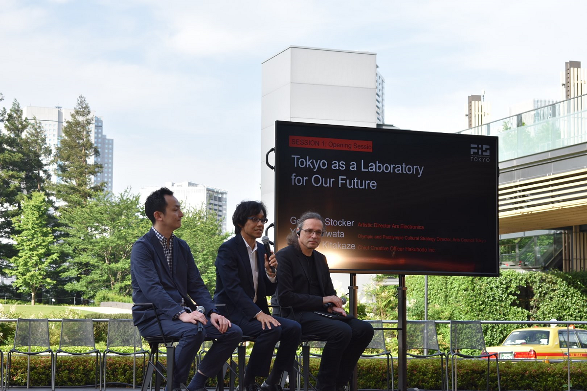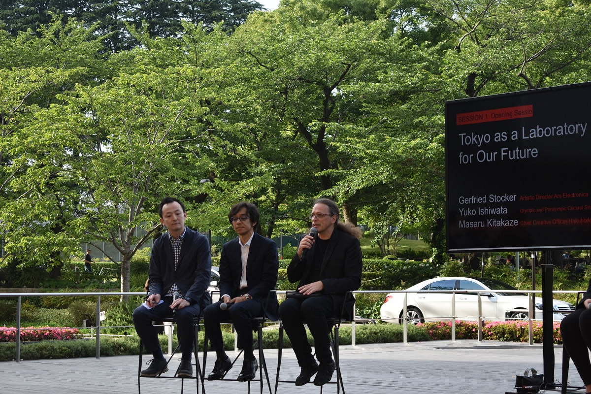 オープニングセッションでは、アルスエレクトロニカ 総合芸術監督のゲルフリート・ストッカー氏、アーツカウンシル東京の石綿裕子氏、博報堂 取締役常務執行役員の北風勝が登壇し、本イベントへのそれぞれの想いや期待を語りました。