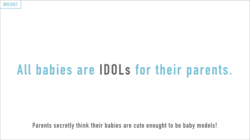 僕は、コンペにおいては「インサイト」が最も重要で、それを決めるのが難しいと感じていました。今回はターゲットが「東南アジアのミレニアル女性」と規定されていて、日本人には想像しづらいなと。そこに「すべての親にとって自分の赤ちゃんはアイドルである」は、まさにこれだ!という直感を得たインサイトだったんです。東南アジアというより、グローバルで共通の太いインサイトですからね。