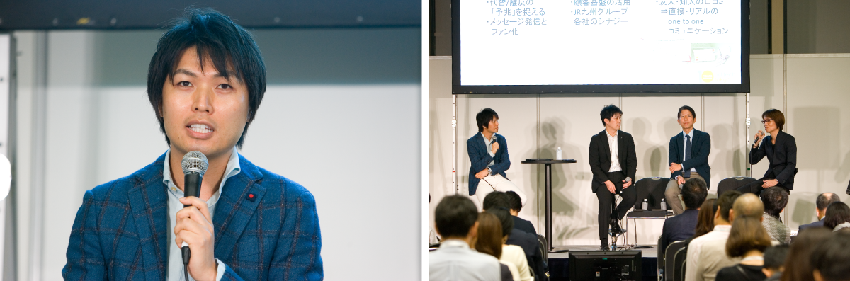 このセッションのモデレーターを務めた露木は、「自動車、鉄道、航空のモビリティ3社の皆さまにお越しいただきました」と挨拶し、ブームがないモビリティという商材をどう売っているのか、また、その際の課題と解決について議論を深めたいとしました。北本氏は「丈夫なクルマが増えたこともあって、半数以上のクルマの保有年数が9年以上となっています」と状況を解説。「ホームページやアプリなどで、自動車メーカーとは違う独自の情報を発信し、お客様とつながっています」と、「ロングスパンのカーライフ」への対応を語りました。森氏は、鉄道の売上シェアは全体の40%程度。駅ビルやその他の事業で顧客との接点を増やしていると、現在の経営状況を説明。その中で「JRキューポ」という共通ポイントをつくり、顧客に利便性を提供する一方で、購買履歴などのデータをマーケティングなどに活用することを始めていると報告しました。山名氏は「クルマや鉄道と違って、航空会社は日常的に顧客と接点を持てないのが特徴であり、大きく異なる点です」と話し、顧客との接点の確保、データの蓄積と活用の手段として、SNSとマイレージの事例をあげました。