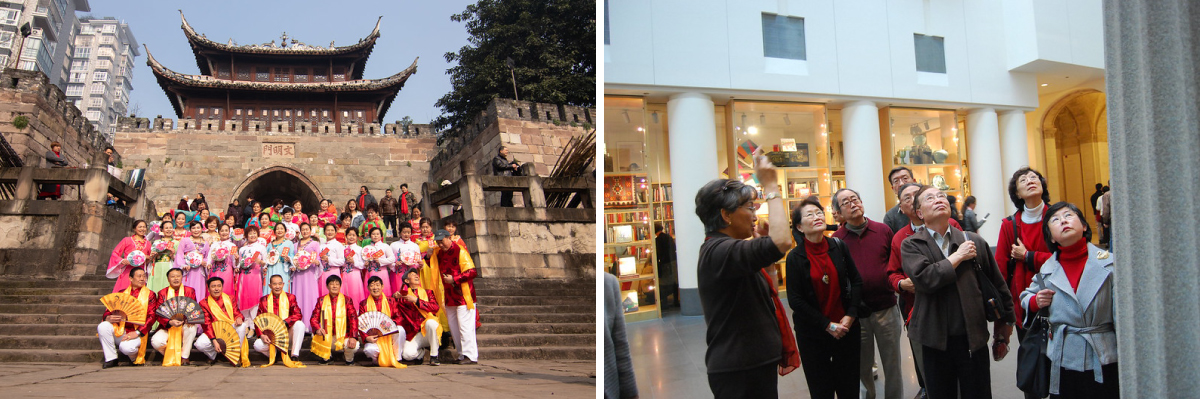 中国の旅行市場では、自分の時間ができて心身ともに豊かに楽しく生活したいシニアが牽引している一方、テーマがどうしても革命聖地巡りや文化史跡巡りなどに限られてしまうため、知識習得への意欲が高いシニアのニーズに応えきれていないのが現状です。そこで「老年大学」がテーマ旅行を企画から運営まで行うようになってきています。絶景スポットでの写真講座とか、人気映画の撮影地で実際に使われていたセットや衣装で本格的な演技指導のもと、短編映画まで作ってしまうとか、美術館で鑑賞をしながら作品の解説を聞くとか、シニアの知的満足度を高める体験をさせることで、「老年大学」は居場所として次第にかけがえのない存在になっていきます。