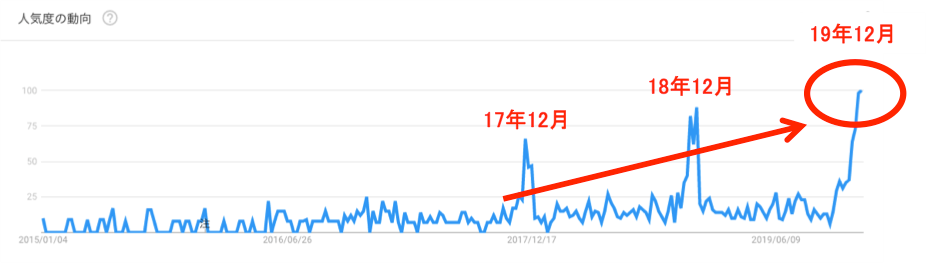 気になったので「プログラミングおもちゃ」をキーワードに見てみると、やはりここ数年で増え続けていました。ちなみに毎年激しく検索数が向上しているのはクリスマス直前の時期。この12月はかつてなく「プログラミングおもちゃ」が検索されていますね。