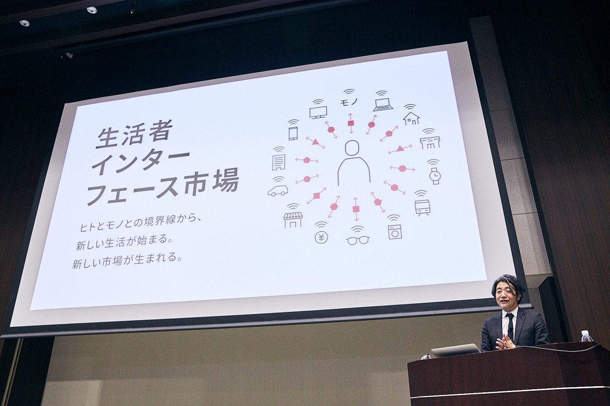 まず、「そもそも生活者インターフェースとは何か?」についてお話しすると、たとえばスマートフォンは私たちの生活を大きく変え、24時間365日ネットに接続することを可能にしました。ですが、今やネットにつながっているのはPCやスマホだけではありません。家がスマートホームになり家電がIoT化し、クルマもコネクティッドカーに進化しインターネットと接続します。これらのアイテムを接点として、企業と生活者が直接つながれる環境が生まれるのです。IoTを下支えする5Gというインフラも整いつつあるため、生活者との接点は今どんどん増えています。この環境の中で生まれるのが「生活者インターフェース市場」です。